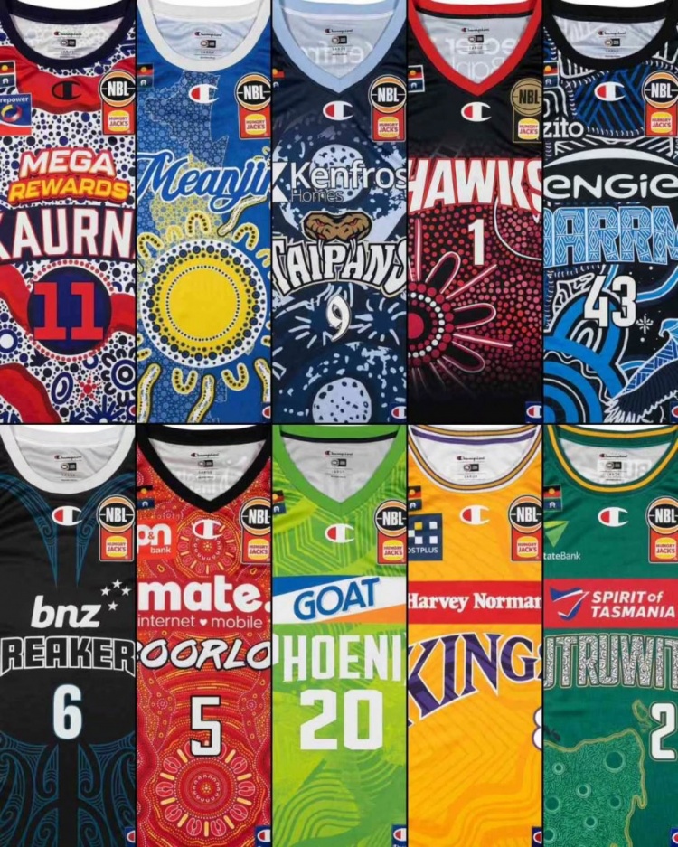 10月18日讯 球衣媒体Basketball Jersey Archive报道,澳大利亚NBL联赛发布了25-26赛季“原住民主题周”的全套球衣系列。全部10支球队的球衣都是由当地的原住民艺术家参与设计。