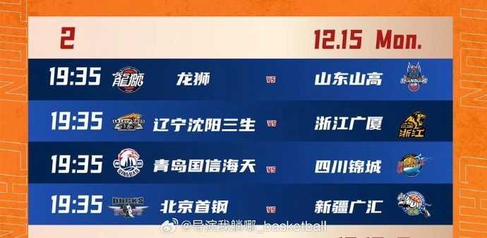 10月20日讯 CBA官方公布了新赛季的赛程,常规赛共42轮。媒体人导演我躺哪列出了一些焦点大战的赛程:辽宁男篮首个主场面对浙江广厦,跨年大战张镇麟首次回到辽宁队主场,元旦大战赵睿携手周琦面对老东家广东宏远 。CBA新赛季赛程出炉!12月12日揭幕战广厦VS山西 常规赛共42轮