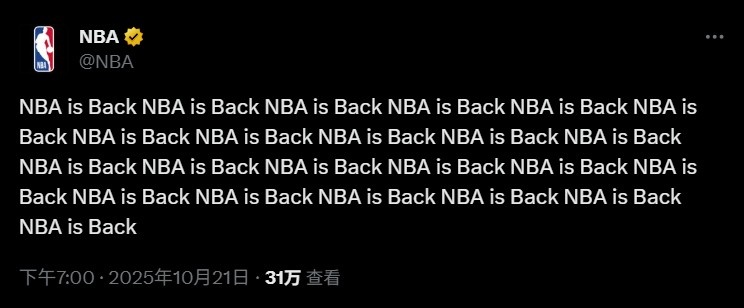 NBA官推今日更新了推文,来给明日的揭幕战进行预热,写道:NBA就要回归啦啦啦啦啦啦啦