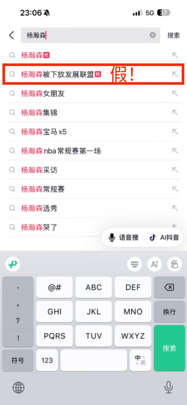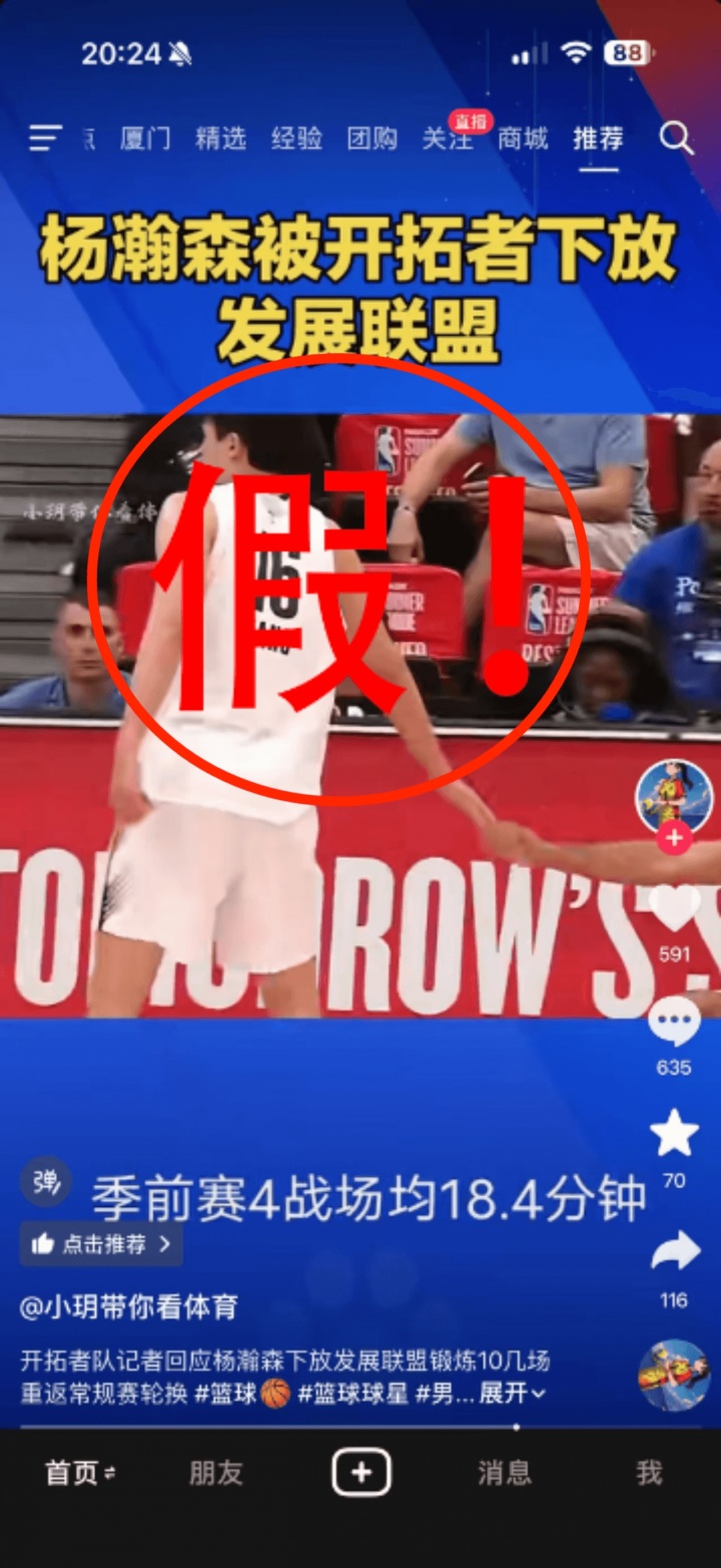 可就在这么个关键的时候,网上却传来一些子虚乌有的谣言,诸多营销号不约而同的表示,杨瀚森被开拓者下放至发展联盟了,相关话题甚至登上了抖音热搜。