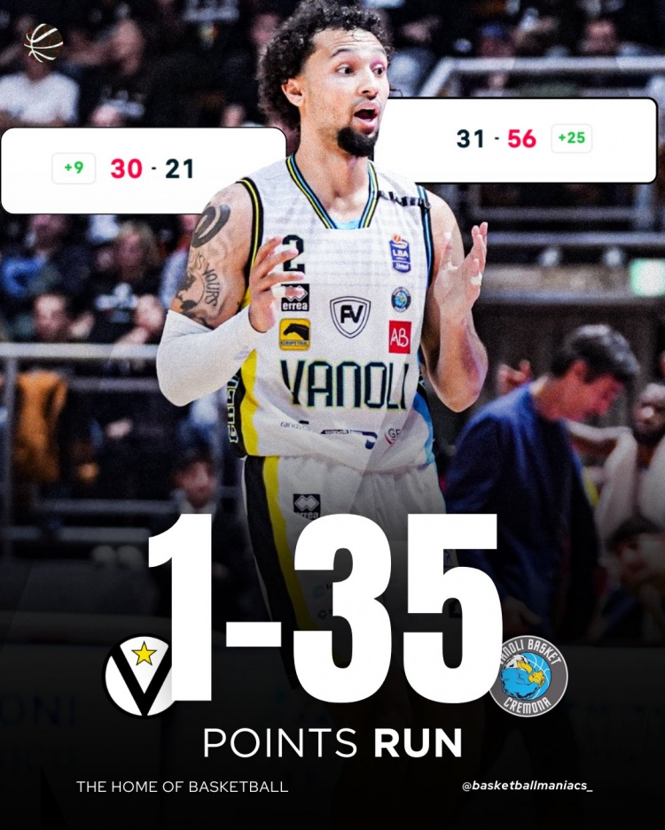 10月21日讯 在今天凌晨结束的一场意大利篮球联赛中,克雷莫纳86-69击败博洛尼亚。比赛中,克雷莫纳打出一波史诗级别的进攻高潮,第二节还剩7分05秒时,他们21-30落后博洛尼亚9分,在随后的10分半钟,他们打出一波35-1的进攻高潮。而在这次进攻高潮中,博洛尼亚这一分也是直到第三节7分35秒才拿到。