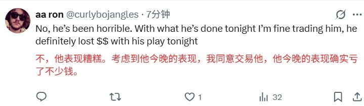 NBA新赛季揭幕战,火箭球员伊森目前表现拉胯,引发美网友热议。
