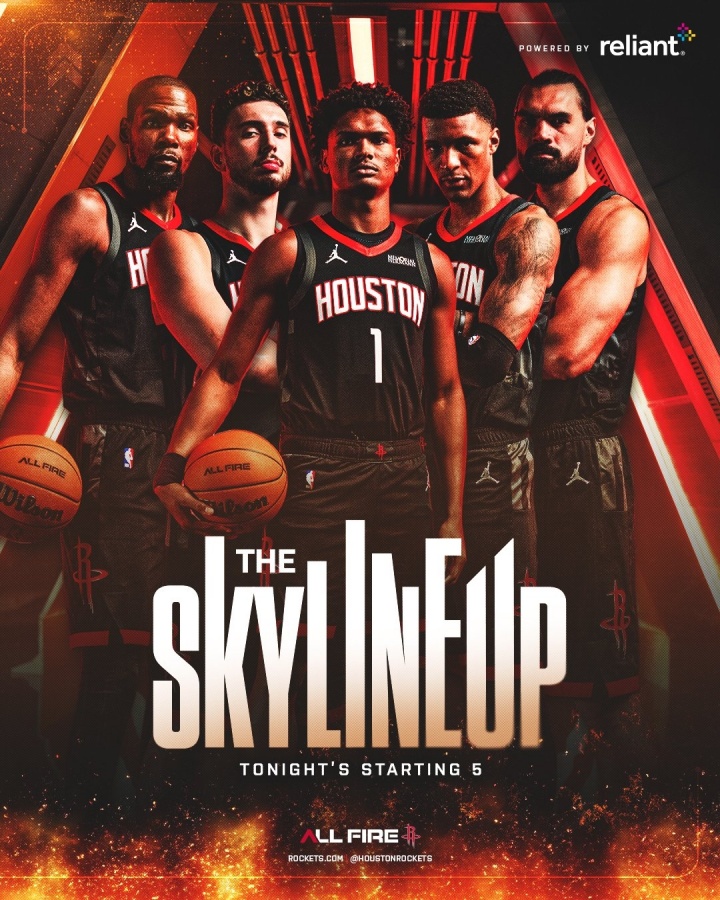 10月22日讯 NBA揭幕战,火箭客场挑战卫冕冠军雷霆。火箭本场比赛首发:阿门-汤普森(2米01)、杜兰特(2米11)、小贾巴里-史密斯(2米11)、申京(2米11)和史蒂文-亚当斯(2米11)。转播方列出火箭先发平均身高:82英寸(2米0828 ),这是自1970-71赛季以来赛季揭幕战首发平均身高最高的球队。
