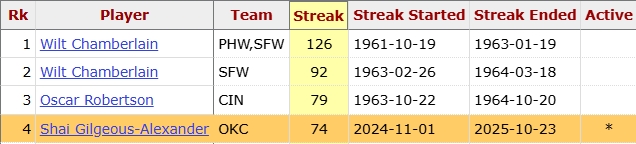10月26日讯 NBA常规赛,雷霆117-100老鹰,亚历山大三节打卡,两分球11中10。本场比赛,亚历山大出战29分钟,投篮17中12,三分6中2,罚球4中4,砍下30分4篮板5助攻1盖帽,正负值+16!本赛季开季三场比赛,亚历山大全部砍下30+,场均40分5.7板5助,投篮命中率52.7%。这也是亚历山大连续75场20+,历史第四长。