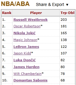 10月26日讯 NBA常规赛,掘金133-111轻取太阳。约基奇本场砍下14分14篮板15助攻的三双。约基奇本场比赛仅用三节时间就达成了三双,这是他生涯第69次三节三双。值得一提的是,即使只计算约基奇的三节三双数,他也能排进NBA历史前十。本场赛前三双榜约基奇生涯至今共获得166次三双,暂列历史第三。前两位分别是威少(203次)和大O(181次)。