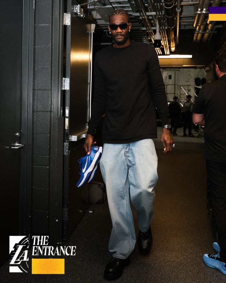 湖人入场穿搭:里夫斯全黑运动装气场拉满 艾顿&范德彪酷炫墨镜