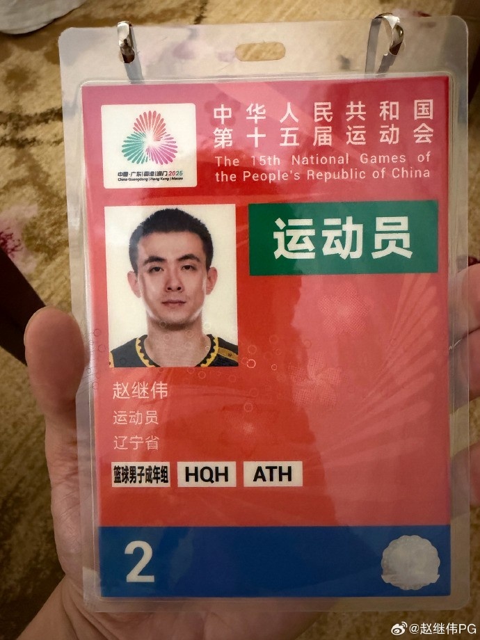 11月1日讯 辽宁全运男篮球员赵继伟更新社媒,晒出自己的参赛证。