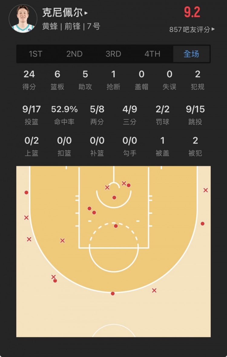 黄蜂4号秀 康-克尼佩尔 登场35.5分钟