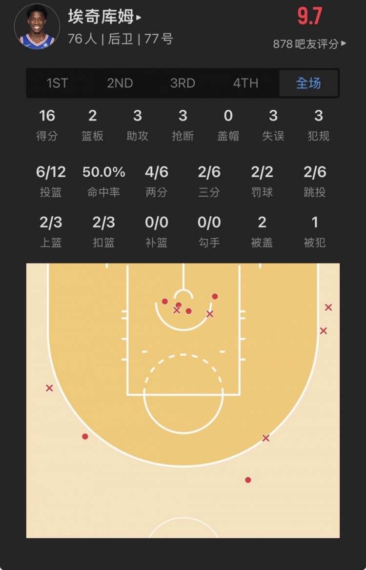 76人探花秀 VJ-埃奇库姆 登场32.9分钟
