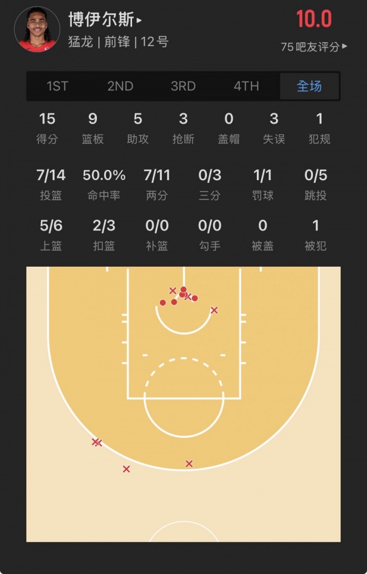 猛龙9号秀 科林-穆雷-博伊尔斯 登场31.2分钟