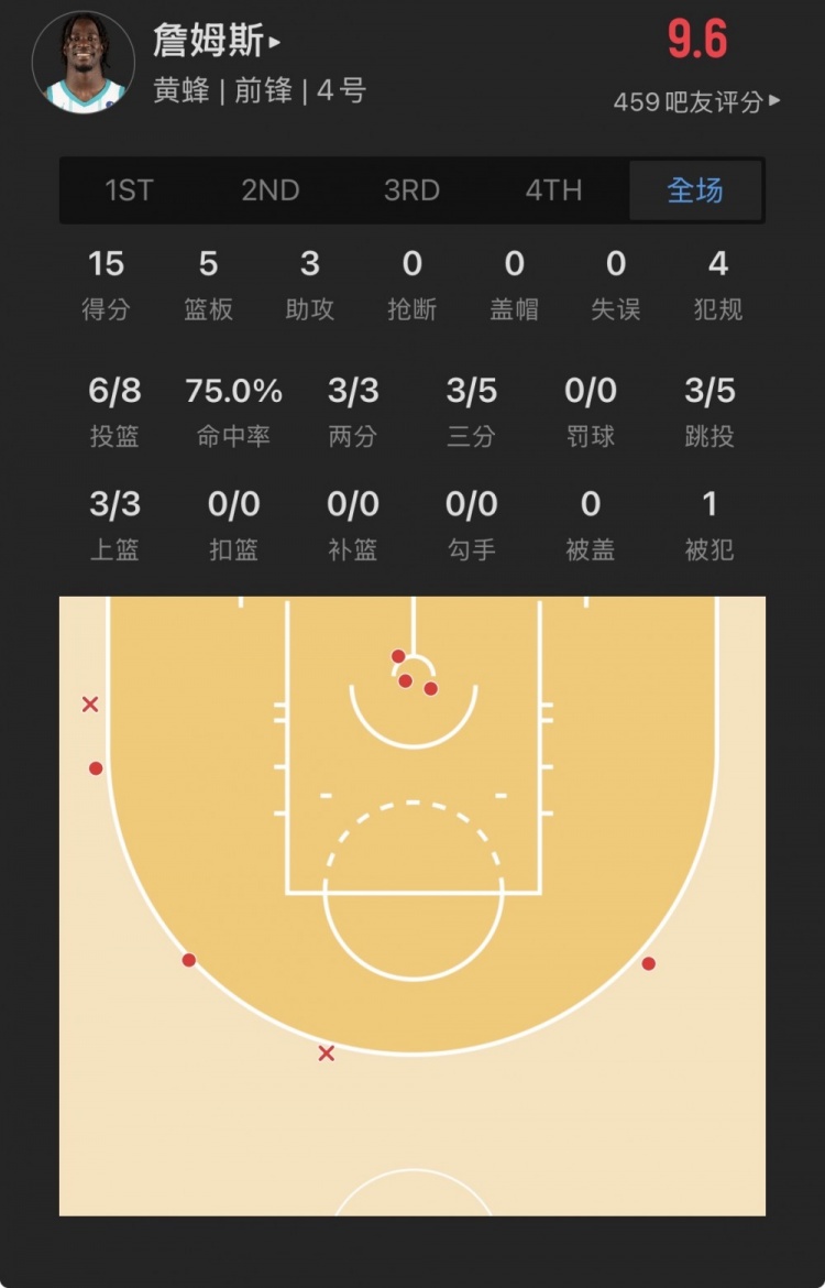 黄蜂33号秀 赛恩-詹姆斯 登场28.8分钟