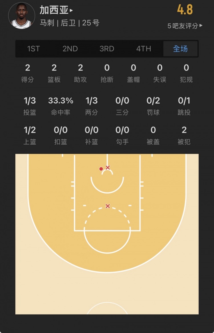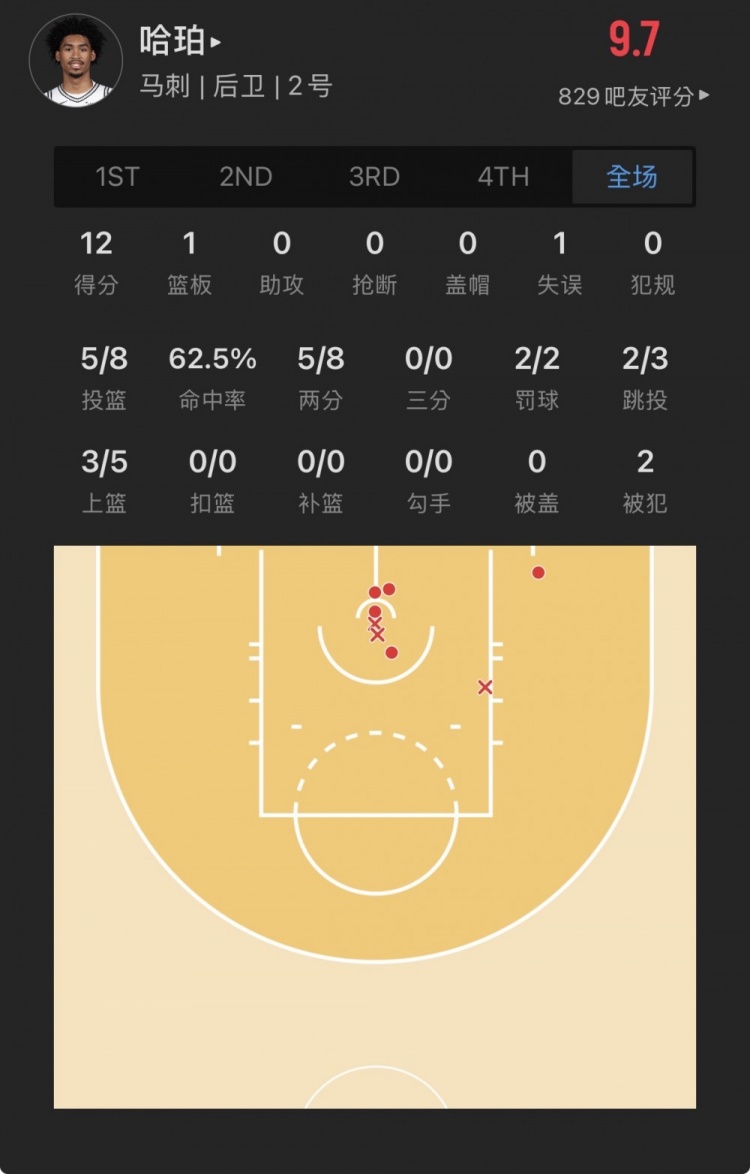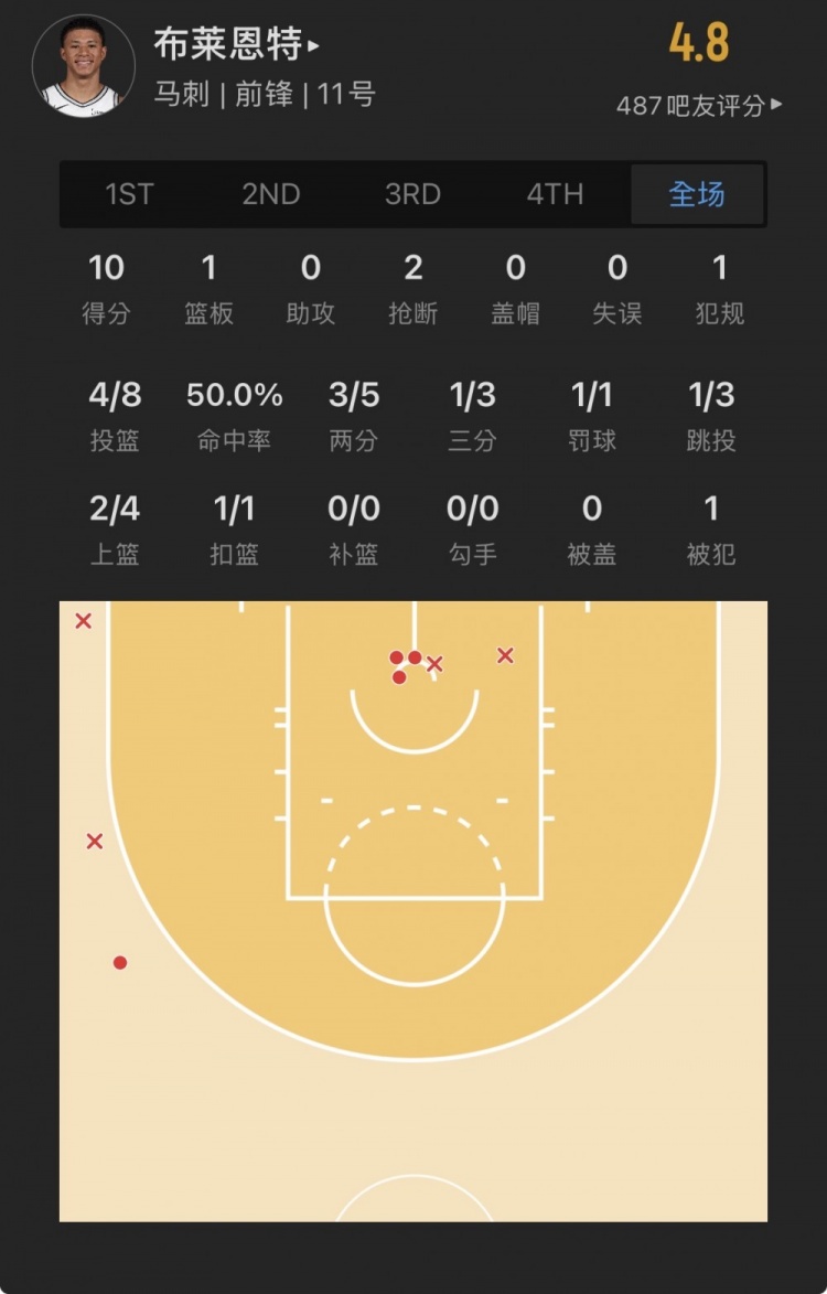 马刺榜眼秀 迪伦-哈珀 登场11.0分钟(伤退)