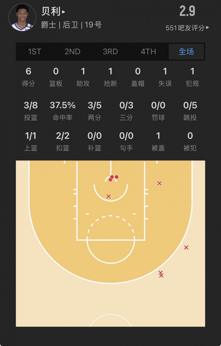 爵士5号秀 埃斯-贝利 登场19.1分钟