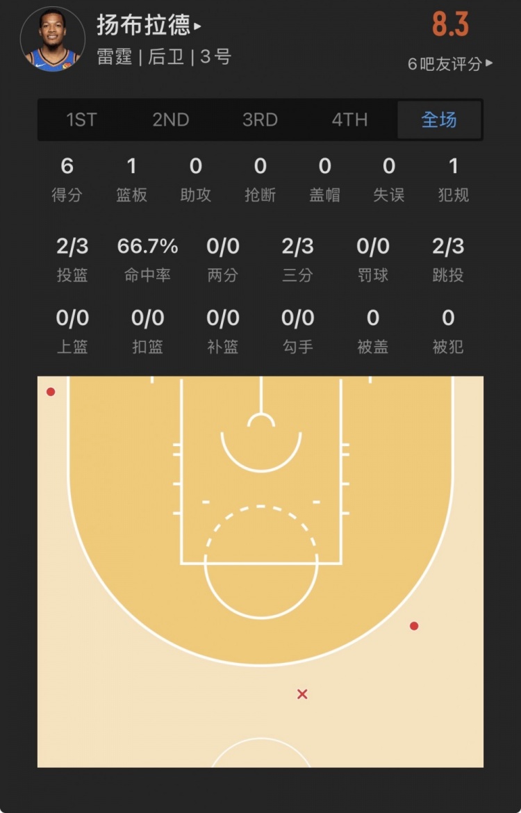 雷霆落选秀 克里斯-扬布拉德 登场6.9分钟
