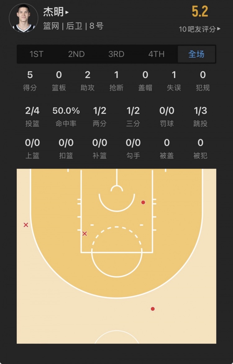 篮网8号秀 叶戈尔-杰明 登场15.4分钟