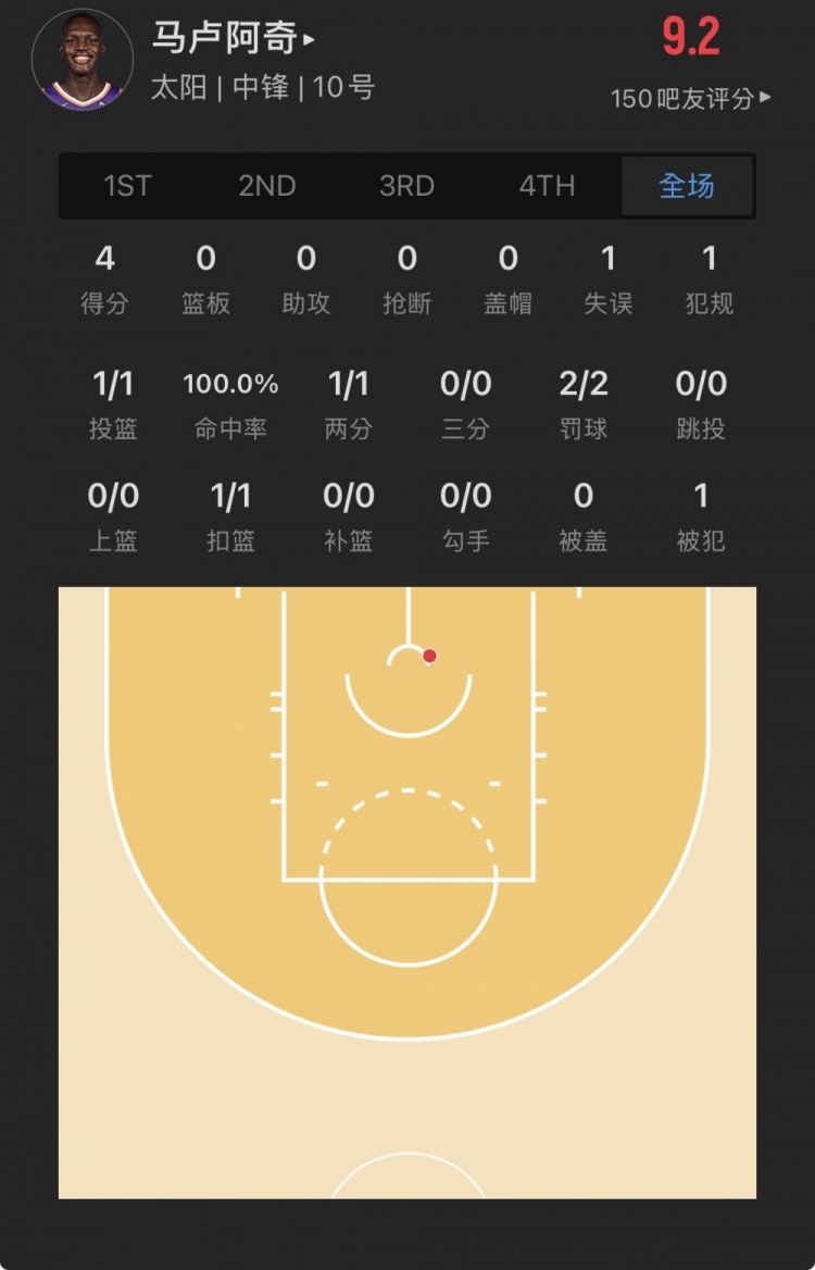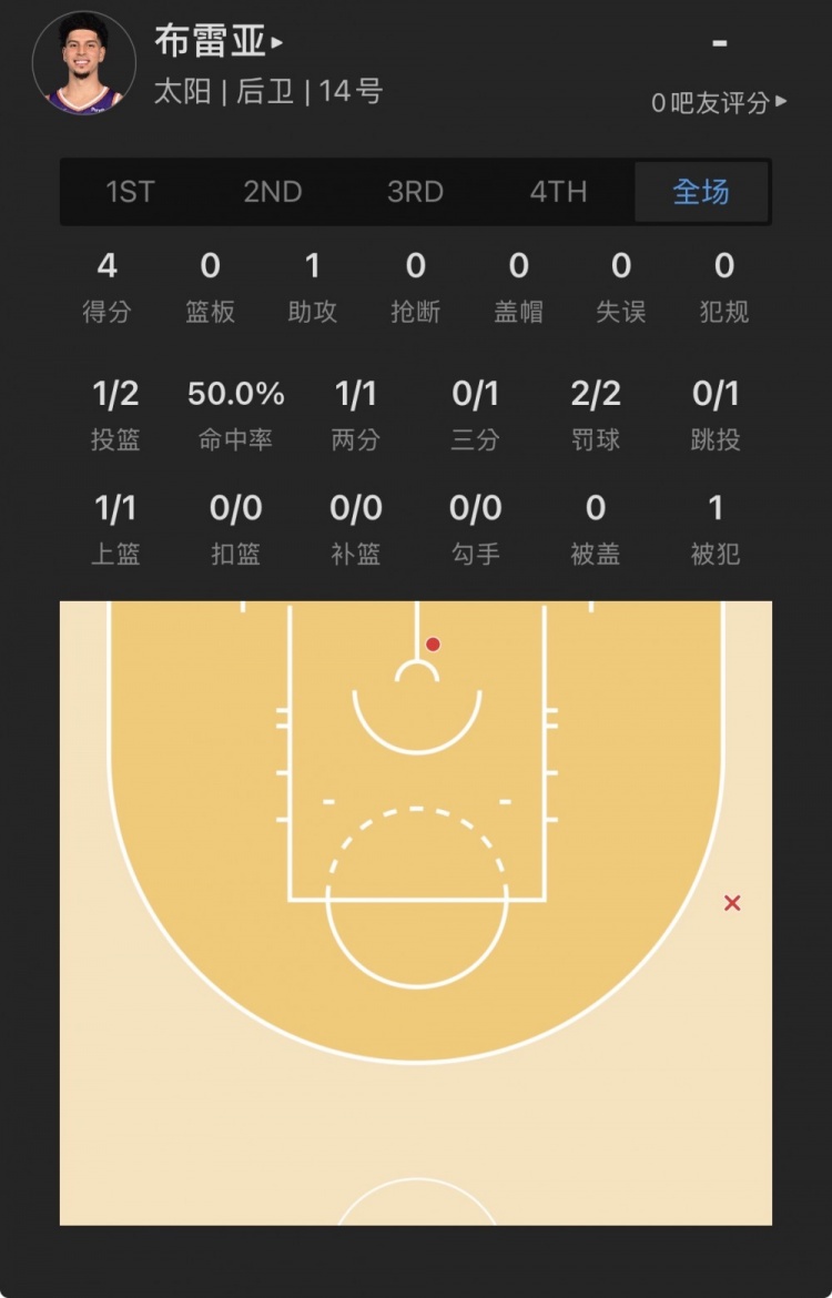 太阳41号秀 科比-布雷亚 登场4.1分钟