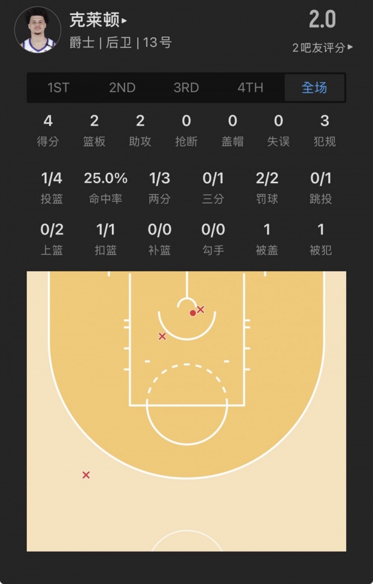 爵士18号秀 小沃尔特-克莱顿 登场18.8分钟
