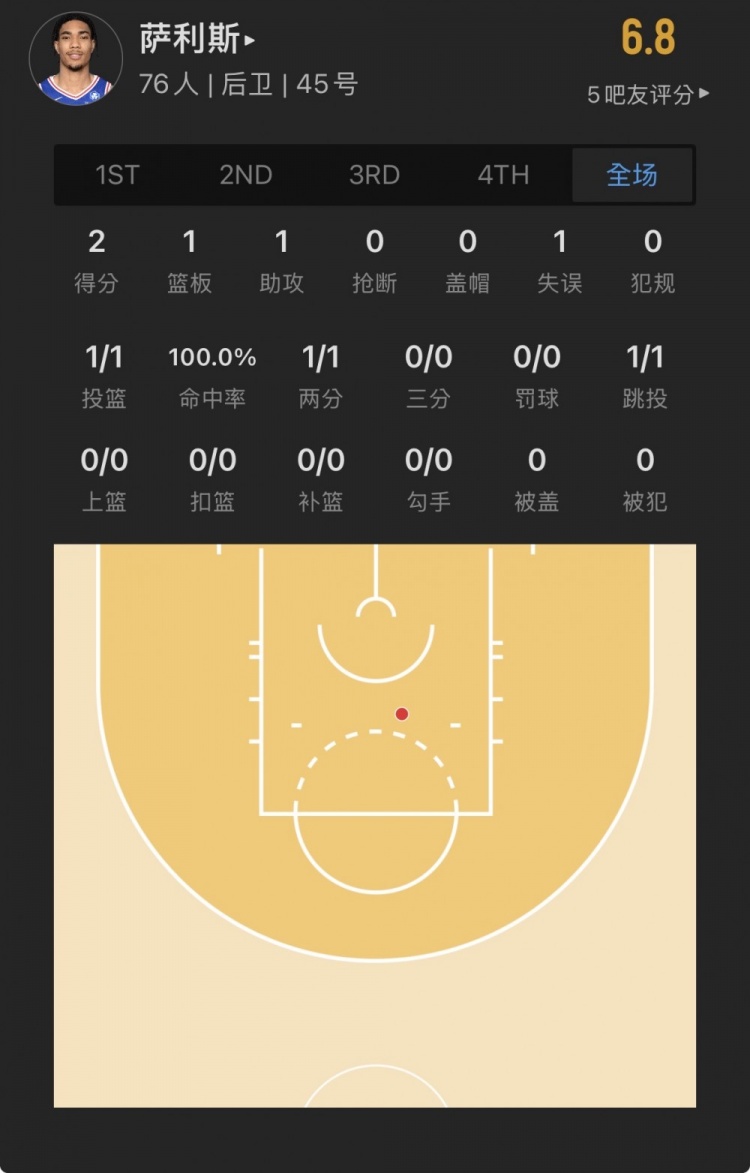 76人落选秀 亨特-萨利斯 登场4.1分钟