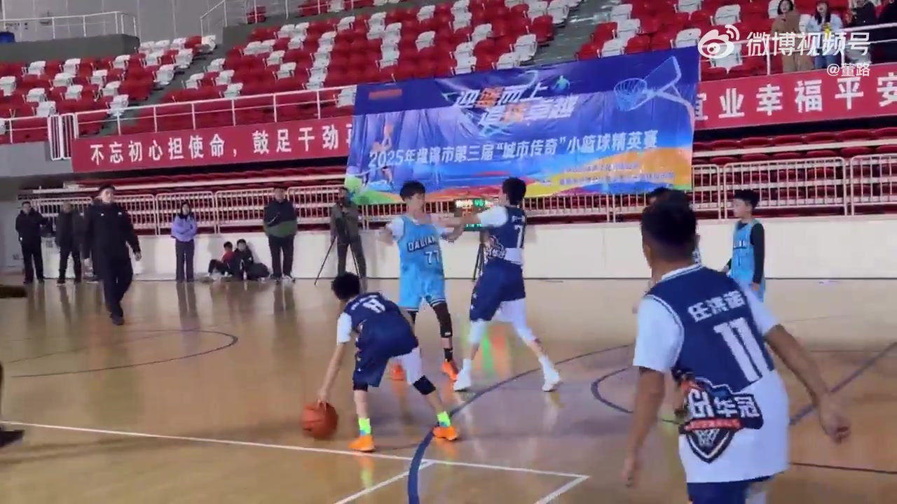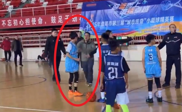 11月03日讯 2025年盘锦第三届“城市传奇”小篮球精英赛。在比赛中,两名小球员在赛场因犯规发生冲突被裁判拉开。一位疑似球员家长的场边的摄影师突然冲进场内怒推场上小球员致其摔倒在地并引发多方家长发生冲突。场上出现推搡、斗殴等行为。