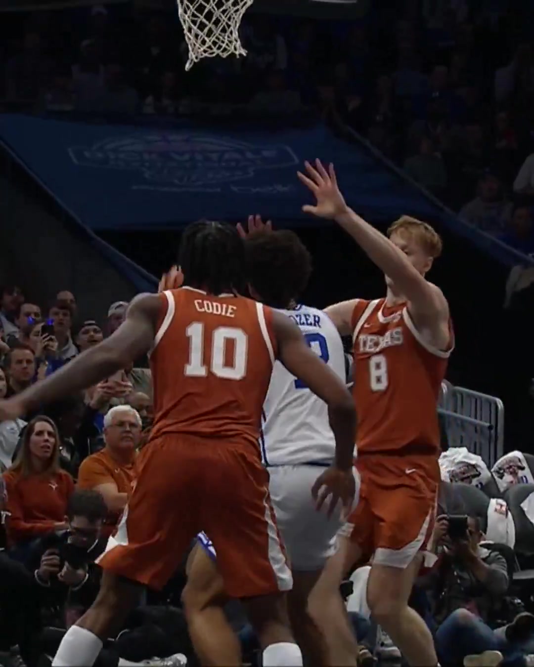 图上12号是卡梅隆·布泽尔,下方是凯登·布泽尔11月05日讯 NCAA常规赛,杜克大学赛季首战以75-60击败德克萨斯大学奥斯汀分校。此役,NBA&杜克大学名宿卡洛斯·布泽尔的两个儿子(异卵双胞胎)迎来赛季首秀,布泽尔本人也来到了现场观战。