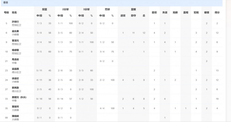 11月5日讯 全运男篮小组赛,上海全运男篮107-83战胜中国香港全运男篮。上海队方面,李弘权40分11篮板1助攻1抢断1盖帽,李添荣26分4助攻1抢断1盖帽,闫鹏飞12分6篮板1助攻,刘正清11分2篮板1助攻。中国香港队方面,惠龙儿19分8篮板2助攻,徐远征12分9篮板1助攻2抢断。