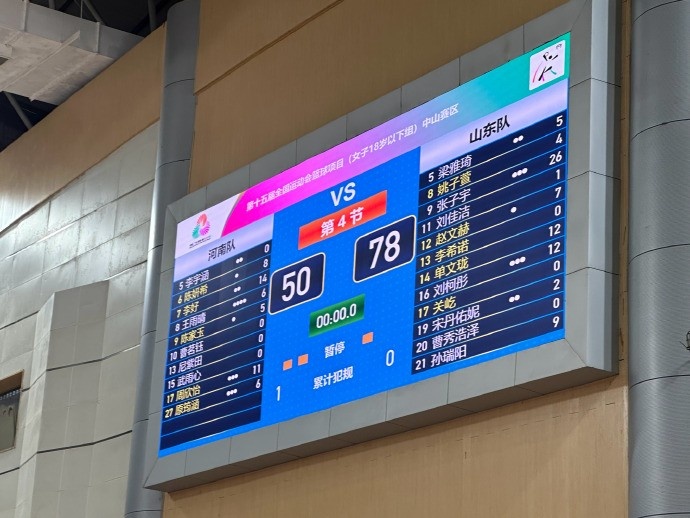 山东队78-50河南队,张子宇15分钟得到26分,单文珑、刘柯彤各12分。河南队李好14分,周欣怡11分14篮板。