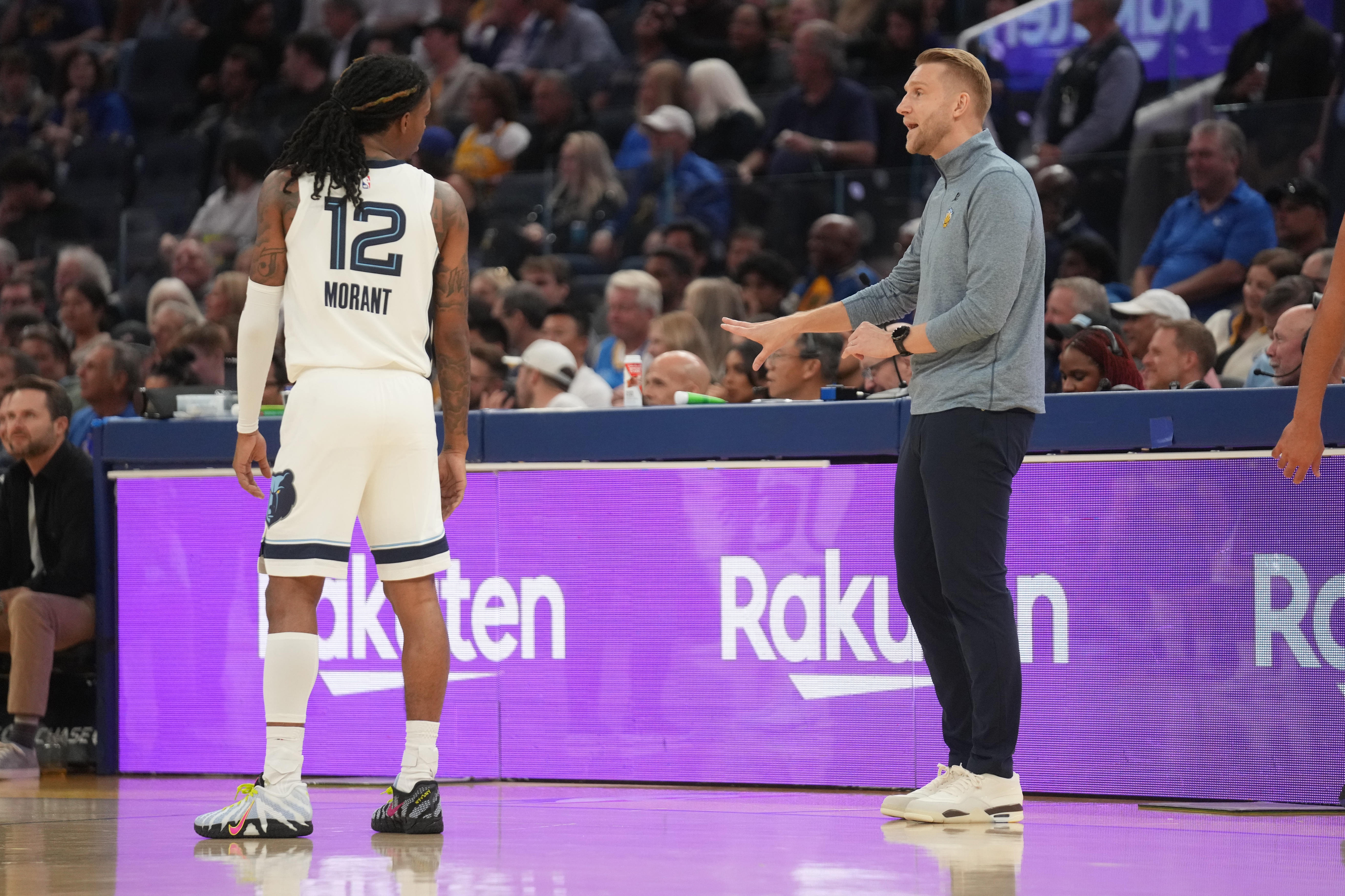 “孟菲斯,就像休斯顿一样,也在学习新的体系,但莫兰特的身体语言在上午的投篮训练中显得有些低落,整个晚上都显得不太对劲。除了在第四节中段比赛已经失去悬念时的一个简短交流外,莫兰特没有与伊萨洛交谈。暂停期间,莫兰特总是独自一人站在板凳席的一端,沉浸在自己的思绪中。每当莫兰特被换下场时,伊萨洛也没有给予他任何鼓励性的握手或拍打,球队内的紧张气氛显而易见。”Iko写道。
