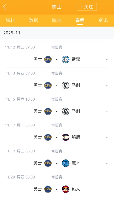 11月10日讯 勇士主场114-83大胜残阵步行者结束2连败。随后勇士即将开启一波魔鬼赛程6连客。勇士6连客的对手分别是:雷霆、马刺、马刺、鹈鹕、魔术、热火。并且勇士此次6连客要在9天之内(11月12日-20日)完成,分为2次4天3赛!