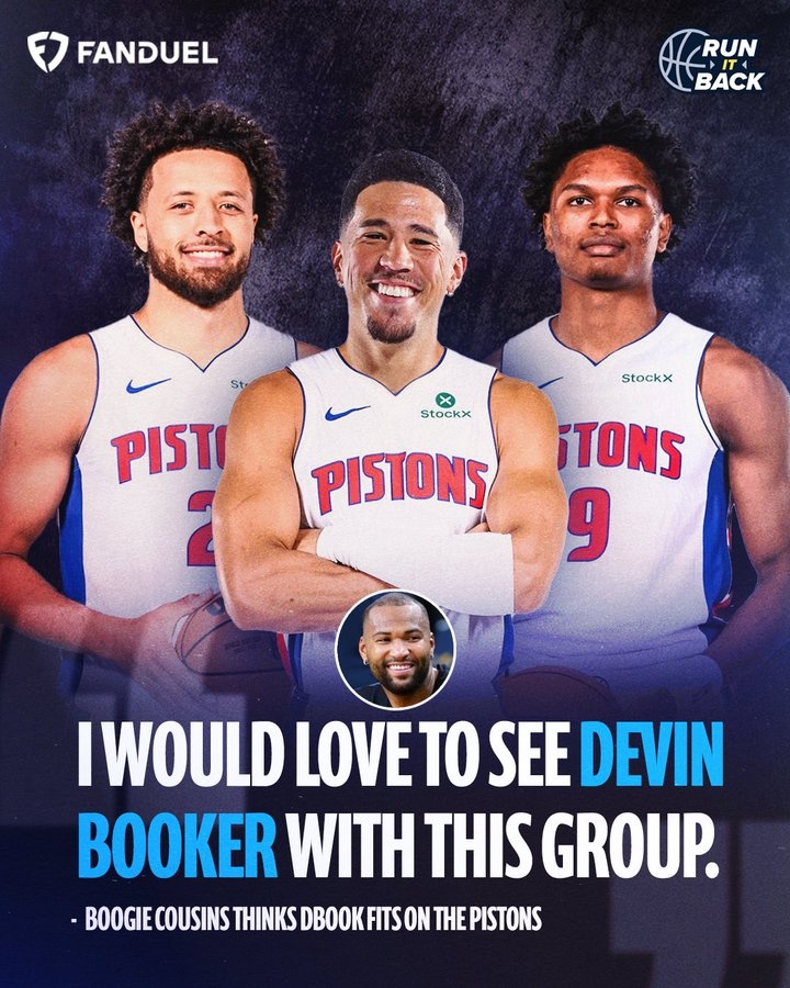 11月10日讯 近日前NBA球员考辛斯在《Run It Back》节目中谈到了活塞。考辛斯说:“我想看布克加盟这支球队。”目前活塞8胜2负高居东部第一;布克本赛季场均29.3分4.7篮板7.2助攻,投篮命中率50%,三分命中率41%,罚球命中率87.2%。
