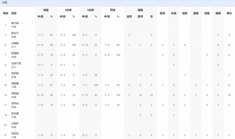 11月11日讯 全运男篮U22组小组赛,河南全运U22男篮68-89不敌山东全运U22男篮。河南队方面,冯博帆23分2篮板4助攻4抢断,贾嘉锴19分12篮板2抢断1盖帽。山东队方面,段昂君22分4篮板4助攻4抢断1盖帽,曲笑宇22分13篮板1助攻3盖帽。