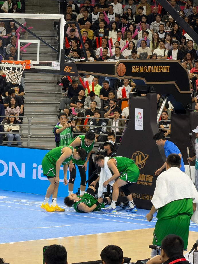 上半场比赛,辽宁全运男篮后卫赵继伟首节遭遇大腿拉伤,次节并未登场,现已回到更衣室!