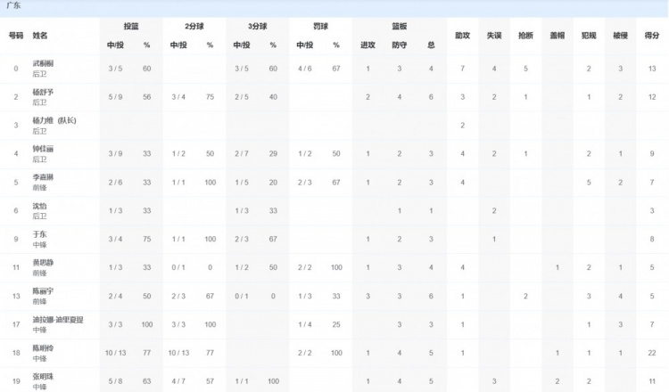 11月13日讯 全运会女篮成年组1/4决赛,广东全运女篮102-73击败上海全运女篮。广东队方面,陈明伶22分5篮板1助攻,武桐桐13分4篮板7助攻5抢断,杨舒予12分6篮板3助攻1抢断。上海队方面,刘雪园26分7篮板,刘露19分4篮板1抢断。
