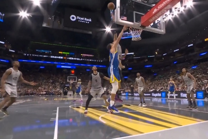 GIF-库里高打板越过文班指尖!这可是文班啊!