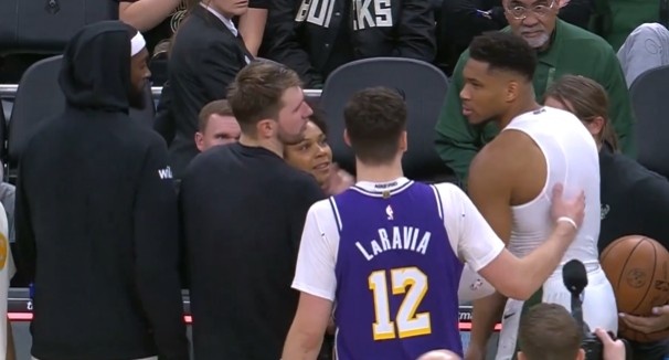 GIF-字母哥大气11月16日讯 NBA常规赛,湖人119-95击败雄鹿。结束了5连客的赛程,赛后,东契奇接受了记者采访。记者:“你已经拿到球准备给蒂耶罗了吗?”东契奇:“是的,花了一些时间,裁判刚开始不想给我们,后来字母哥把球拿给了我们,所以我很尊重他!”相关新闻:活力十足!阿杜·蒂耶罗迎生涯首秀 登场随即拼下一个前场篮板范德彪想拿比赛用球 但被裁判上前抢断!小里双手一摊!