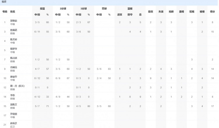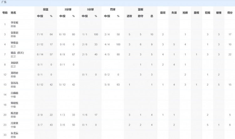 11月16日讯 全运会女篮U22组7-8名排位赛,广东U22全运女篮75-78不敌福建U22全运女篮。广东队方面,杨蕊22分5篮板4助攻,张紫玥17分10篮板2助攻,张玮玮15分1篮板1助攻3抢断。福建队方面,温陈艾17分2篮板,詹雨诺15分4篮板1助攻,廖丽华14分3篮板9助攻1抢断。