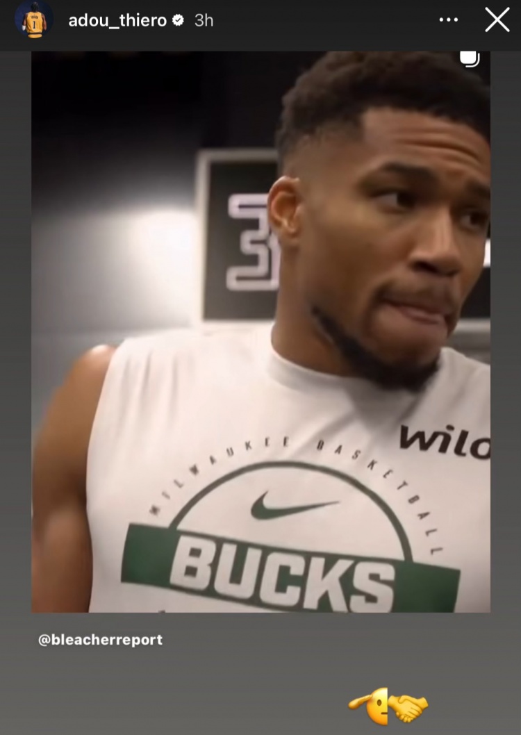 11月17日讯 昨日湖人战胜雄鹿的赛后,双方球员以及裁判针对比赛用球展开了一段拉扯。当时,范德比尔特最先拿到了球,但是被主裁判强行拿走,交给了雄鹿工作人员;最终,字母哥把球从工作人员手里拿了过来,交给了东契奇,东契奇最后送给了今天生涯首秀的阿杜·蒂耶罗。今天蒂耶罗更新INS转发了字母哥的赛后采访,并配文:“