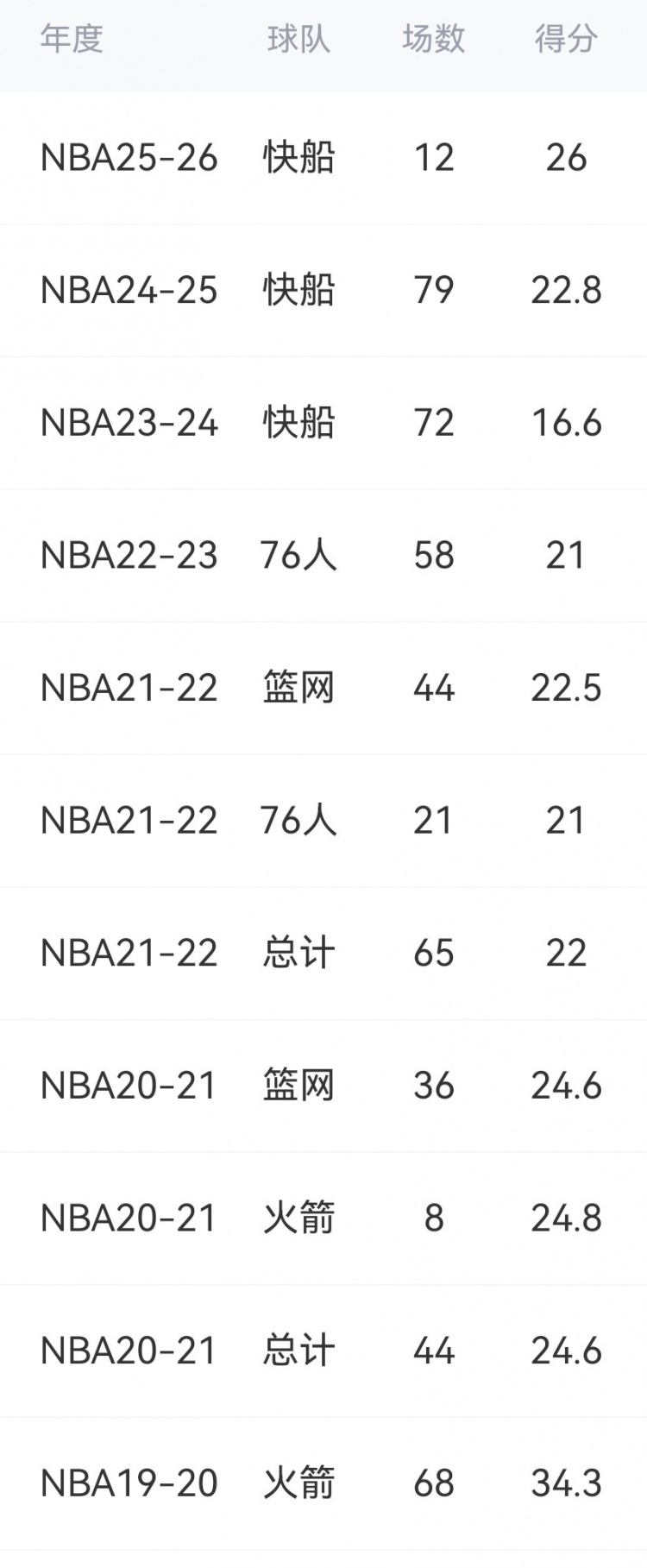 据统计,这是哈登自2020-21赛季离开火箭后,场均得分最高的一个赛季。