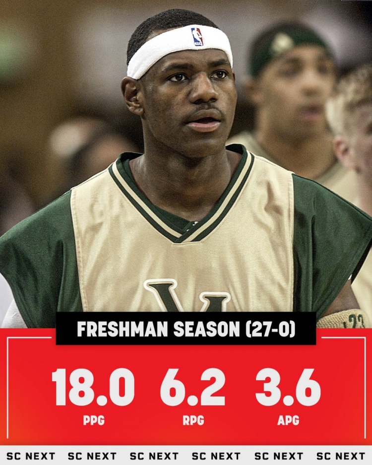 11月19日讯 ESPN晒出了詹姆斯高中四年生涯的单赛季场均数据和球队战绩。其中高一赛季,场均18分6.2篮板3.6助攻,球队27胜0负。高二赛季场均25.5分7.4篮板5.5助攻,球队26胜1负。高三赛季场均28分8.9篮板6助攻,球队战绩23胜4负。高四赛季场均30.4分9.7板4.9助,球队战绩25胜1负。