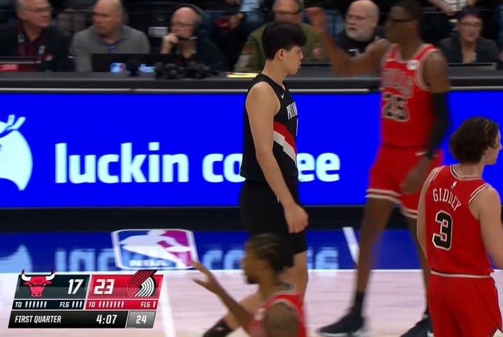 GIF-杨瀚森被换上场NBA常规赛,开拓者坐镇主场迎战公牛,首节进行到4分07秒时,中锋杨瀚森替补登场。值得一提的是,杨瀚森在首节还剩6分多钟时就等在斯普利特旁边准备替换上场,但一直到4分07秒才得到机会(死球),不过比赛又迅速进入到官方暂停,小杨还分配到一条擦汗的毛巾