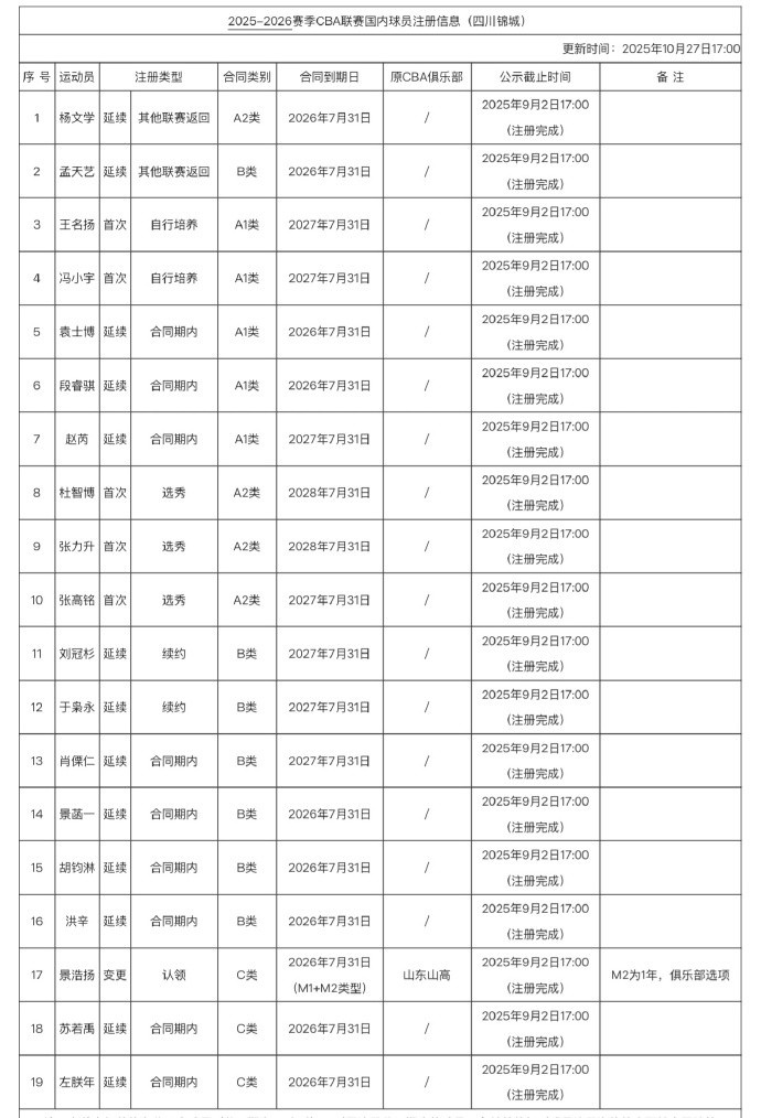 之后@球圈赵探长 还在社媒上盘点了四川男篮的情况:“四川男篮目前的‘球员资产’:本土球员19名、优先续约权外援1名。”