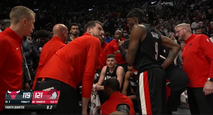 11月20日讯 NBA常规赛,开拓者121-122惜败公牛。