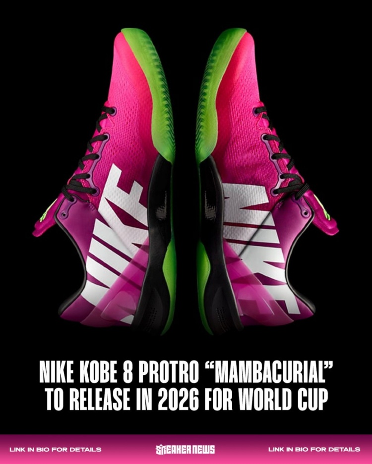 11月21日讯 球鞋媒体SneakerNews报道,科比球鞋NIke Kobe 8 Protro “Mambacurial” 将在2026年回归。这双鞋最初于2013年发售,该配色不只是简单的配色融合,更是将Kobe 8与耐克的Mercurial 刺客足球鞋概念融合的经典设计。