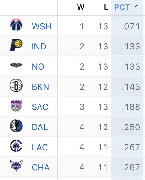 他晒出联盟倒数前八球队战绩并写道:“在赛季打了15场比赛时,你可能已经猜到了这8支球队中的7支。但快船……”