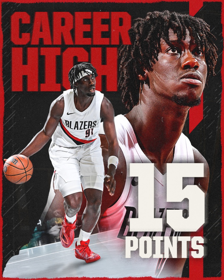 11月22日讯 今天的NBA杯,开拓者127-123在客场逆转险胜勇士。本场比赛,开拓者双向合同球员凯莱布·乐福爆砍生涯新高26分、另一名双向合同球员西迪·西索科爆砍生涯新高15分,两个双向合同球员打爆了勇士。