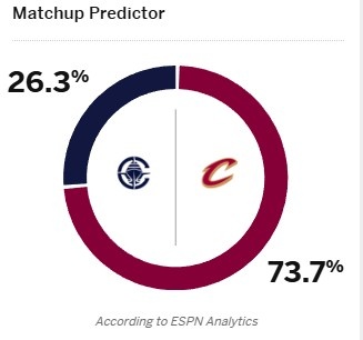 11月23日讯 明天07:00NBA常规赛,快船客场挑战骑士。ESPN给出胜率预测,快船仅为26.3%,骑士为73.7%。据此前报道,莱昂纳德预计将在周一对阵骑士的比赛中复出,他已因脚踝和脚扭伤连续缺席了最近十场比赛。