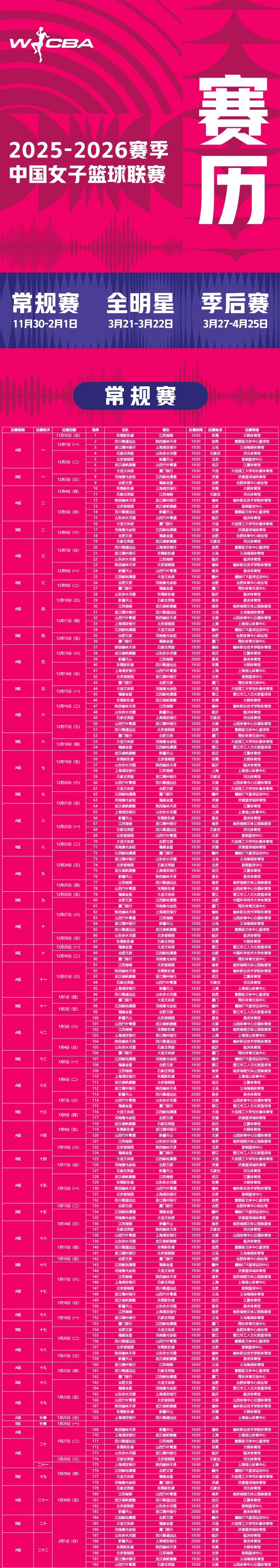 新赛季赛程来啦!揭幕战即将于11月30日在大朗体育馆打响