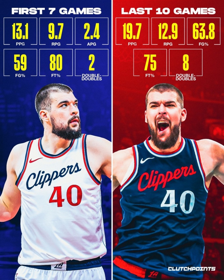 赛季前7场,祖巴茨场均13.1分9.7篮板2.4助攻,投篮命中率59%,罚球命中率80%,2次两双;