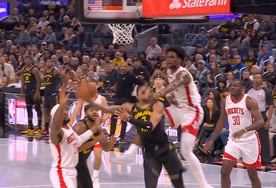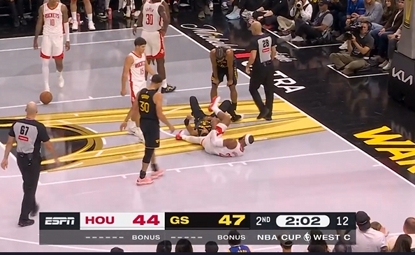 理查德上篮被阿门恶犯&倒地压到奥科吉膝盖 后者有点痛苦但无碍