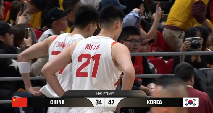 半场数据:中国男篮:廖三宁10分2助、胡金秋8分1板、周琦7分5板、张镇麟4分2板1助、程帅澎3分2助、曾凡博2分1板1助、高诗岩3板、王岚嵚2板、胡明轩1板2助、朱俊龙1板1助2断;韩国男篮:李贤重20分6板、李政玹11分2板1助、安永俊6分3板2帽、河允基6分1板、李承炫2分2板4助、边俊亨2分1板1助、姜相载1板。