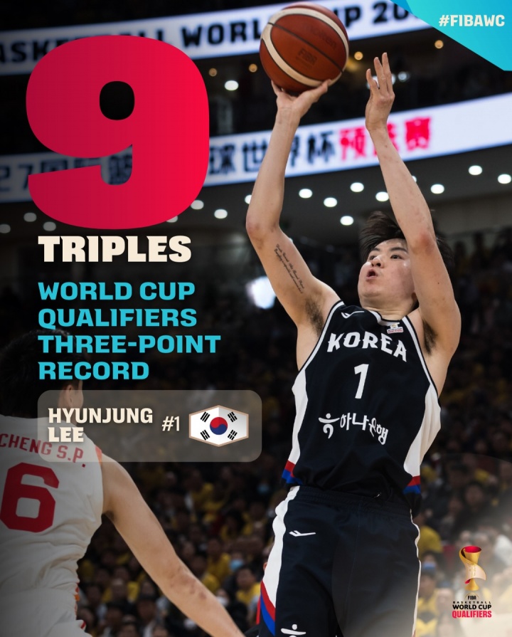 11月29日讯 昨晚男篮世预赛,中国男篮在主场以76-80不敌韩国男篮,遭遇开门黑。此役,韩国男篮核心李贤重投进9记三分,创造男篮世预赛单场最高纪录,此前是8记三分(一共有7人)。男篮世预赛单场8记三分球员全场比赛,李贤重登场38分27秒19投12中,三分14中9,砍下33分14篮板2抢断。作为对比,中国男篮全队三分球26投6中。